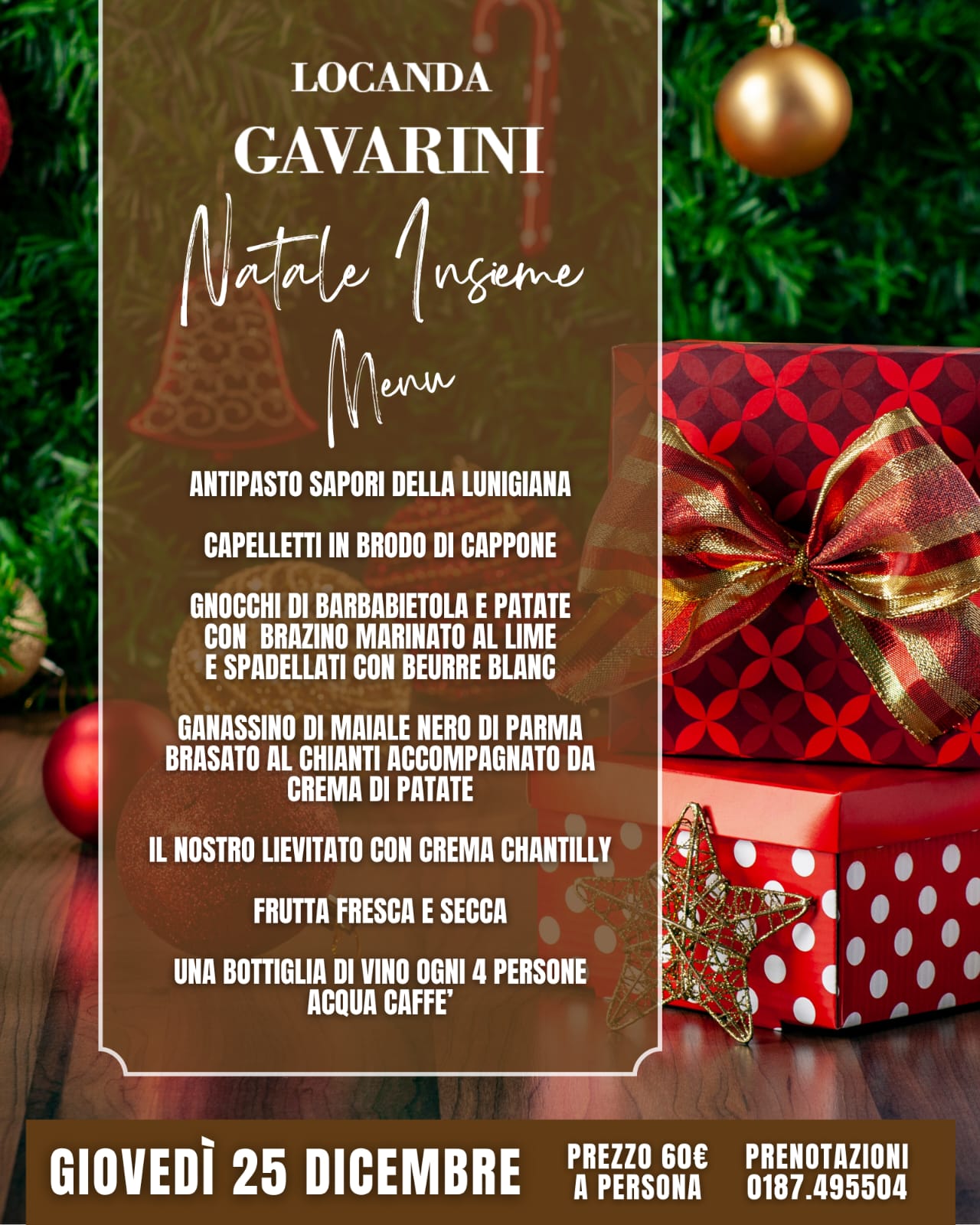 Il Natale è fatto di profumi che scaldano il cuore, di piatti che raccontano la nostra terra e di tavole che uniscono Alla Locanda Gavarini vi aspettiamo per passare Natale insieme, con un menù pensato per celebrare la tradizione e i sapori autentici della Lunigiana Prenota subito il tuo tavolo al 0187.49550